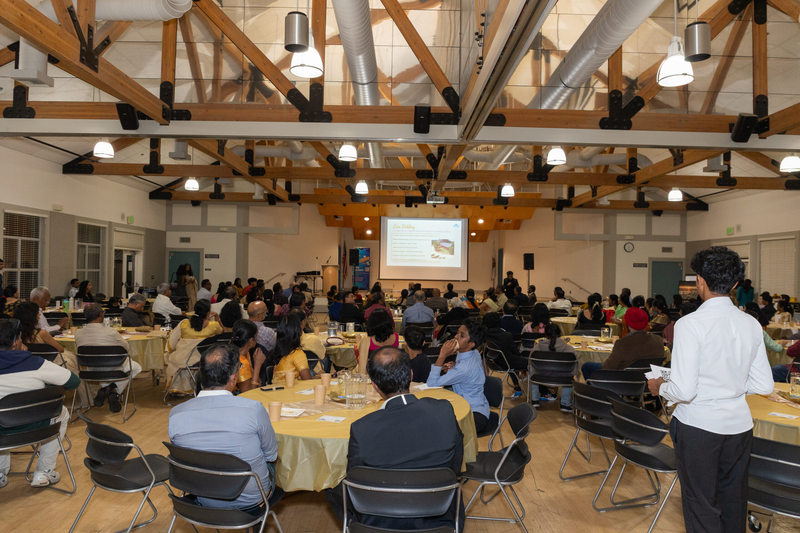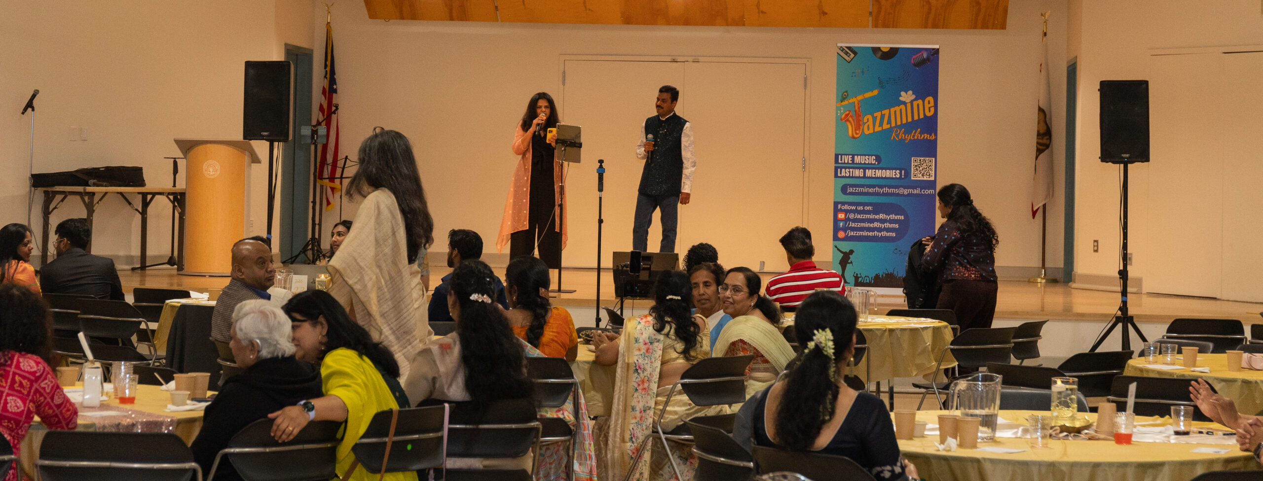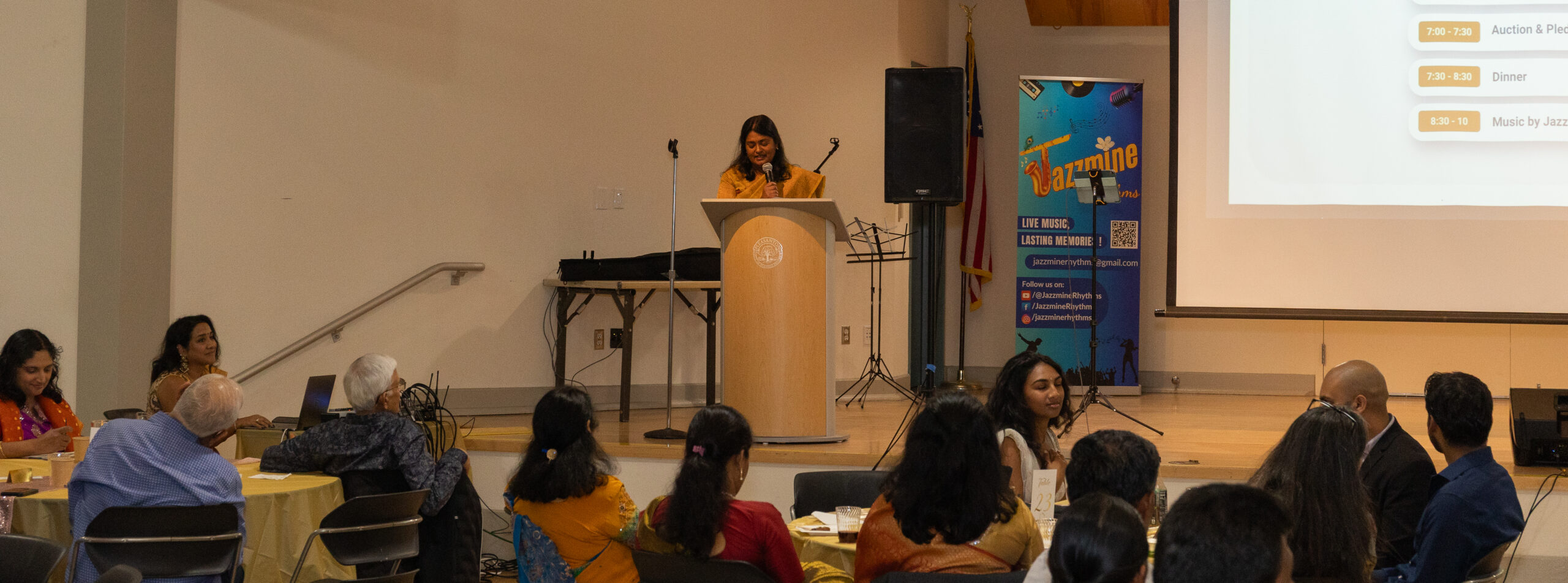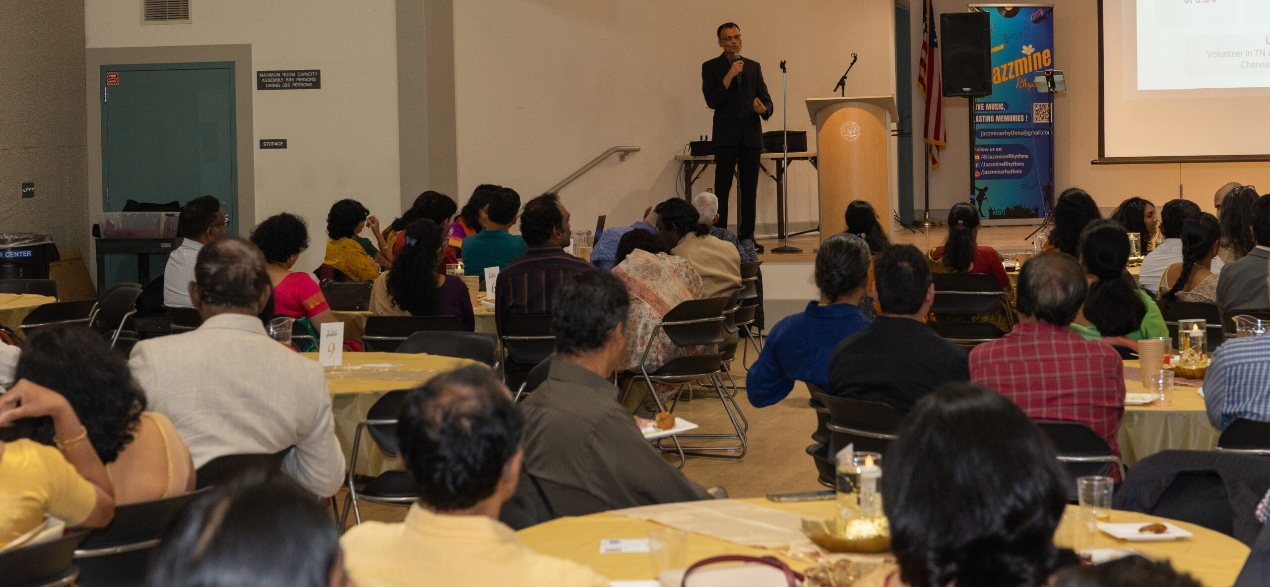 Our ~230 guests enjoyed inspiring words from Mr. M. R. Rangaswami (Founder at Indiaspora, CEF & Sand Hill Group), exquisite wines from V5 Vineyards, a delicious dinner from Annachi Kadai, and lively entertainment by a local Tamil Light Music band, Jazzmine.